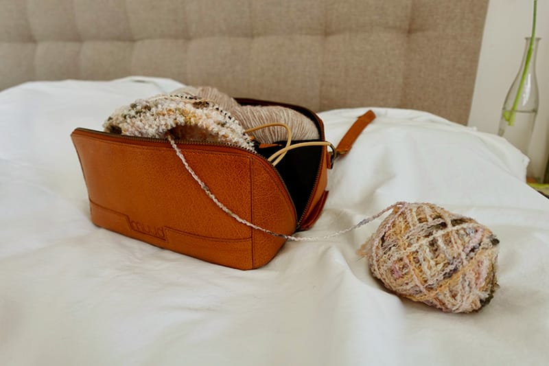 Die Cheri Bumbag von Muud ist eine ganz andere Art von Stricktasche. Sie hat eine schlanke und kompakte Silhouette und ist weder sperrig noch sehr groß. Im Gegensatz zu anderen Stricktaschen legt man sie wie einen Gürtel um die Hüfte oder Taille. Wie alle Muud-Taschen ist auch die Cheri Bumbag aus Leder gefertigt und eignet sich perfekt für Strickerinnen und Stricker, die immer unterwegs sind, da man mit ihr auch in öffentlichen Verkehrsmitteln oder beim Gehen stricken kann, ohne dass der kreative Fluss unterbrochen wird. Die Cheri Bumbag verfügt über mehrere Fächer, in denen Garn, Nadeln und Zubehör gut organisiert aufbewahrt werden können. Der verstellbare Gurt sorgt für einen bequemen Sitz, der wie ein Gürtel funktioniert. Die Tasche ist perfekt für kleinere Projekte wie Fäustlinge oder Socken, da sie nicht für ein großes Projekt geeignet ist, aber für kleine Projekte ist sie perfekt! Ich habe sie auf meiner letzten Reise nach Graz die ganze Zeit getragen und hatte nie das Problem, dass mir die Schulter weh tat oder ich zu viel Gewicht auf dem Rücken hatte!