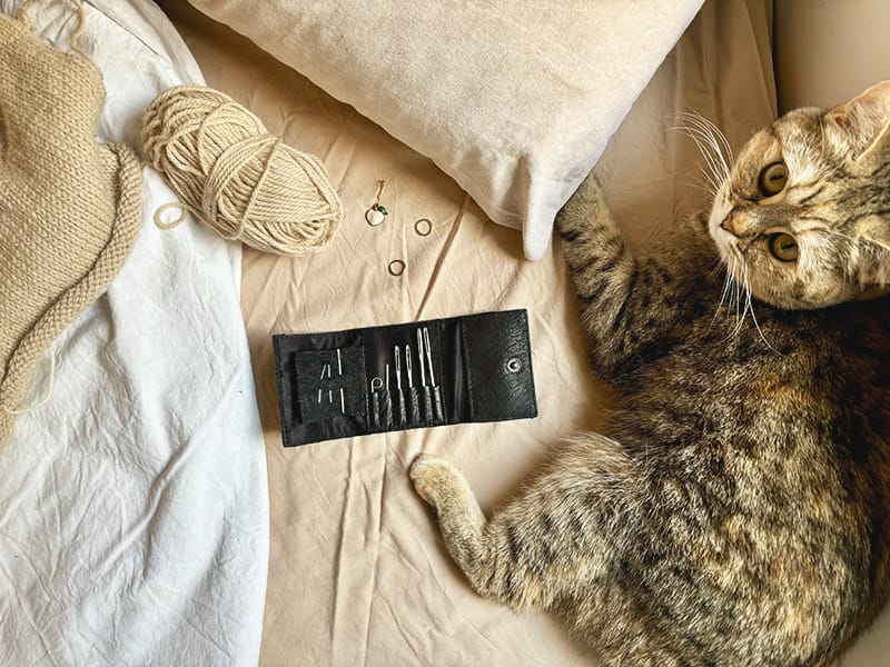 Das Carita B Case ist perfekt für alle, die gerne Mützen stricken. Es bietet Platz für drei Sätze kürzerer Nadeln und hat außerdem eine große Tasche, in die noch mehr Nadeln passen. Ich lege gerne das Carla-Etui hinein, damit ich alle meine kleineren Nadeln an einem Ort habe. Mein individuelles Nadel-Etui ist perfekt, wenn ich an einem längeren Projekt arbeite, für das ich viele verschiedene Nadelgrößen benötige, da ich alle Größen und Längen von Stricknadeln und Kabel an einem Ort sammeln und bei Bedarf einfach mitnehmen kann. Das Carita und Carita B Etui sorgt dafür, dass deine Strickwerkzeuge immer in Reichweite sind.