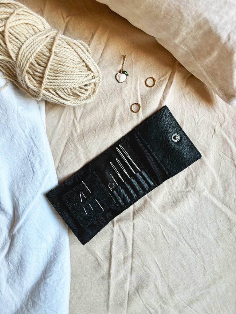 Für Strickerinnen, die die schönste Organisation bis ins kleinste Detail schätzen, ist das Carla Case ein wahres Schmuckstück. Dieses Lederetui verbindet Eleganz mit Funktionalität und ist damit ein exquisites Accessoire für alle Strickbegeisterten. Für alle, die wie ich immer ihre Nadeln und Fäden verlieren, ist dieses Etui genau das Richtige! Es passt auch perfekt in das Carita B-Etui, wenn Sie alles zusammen aufbewahren möchten. In das Carla-Etui passen Näh- und Stopfnadeln in vielen verschiedenen Größen und es hat auch ein kleines Fach für Nähgarn. Für alle, die auf der Suche nach einem kleineren Geschenk für eine Strickerin sind, ist das Carla-Etui genau das Richtige.